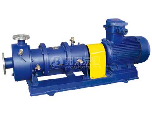 CQB-G型不銹鋼高溫保溫磁力泵(簡稱高溫磁力泵)通常由電機(jī)、水冷卻裝置、磁力偶合器和耐腐蝕離心泵四大部分組成,根據(jù)不同要求另可做成不銹鋼高溫防爆磁力泵。高 溫磁力泵其主要特點(diǎn)是利用磁力偶合器傳遞動(dòng)力。當(dāng)電動(dòng)機(jī)帶動(dòng)磁力偶合器的外磁鋼旋轉(zhuǎn)時(shí),磁力線穿過間隙和隔離套,作用于內(nèi)磁鋼上,使泵轉(zhuǎn)子與電動(dòng)機(jī)同步旋轉(zhuǎn),無機(jī)械接觸地傳遞扭矩。在泵的動(dòng)力輸入端,由于液體被封閉在靜止的隔離套內(nèi),沒有動(dòng)密封因而無泄漏。磁力偶合器的磁性材料采用耐高溫型稀土永磁材料, 能承受280度以下的高溫介質(zhì)而保持強(qiáng)大的磁力扭矩。在電機(jī)與磁力偶合器之間加裝了水冷卻裝置,防止泵送高溫介質(zhì)之熱量傳導(dǎo)至電機(jī),以保持電機(jī)的正常運(yùn)行,從而達(dá)到無泄漏輸送高溫介質(zhì)。